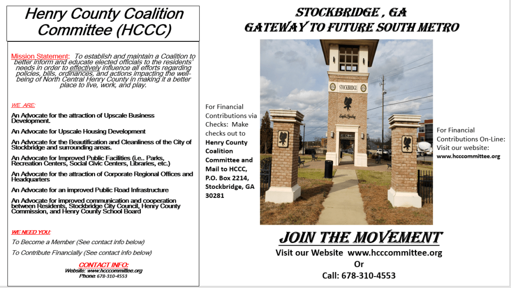 The Henry County Coalition is a Committee established by local Stockbridge residents. We encourage you to view the information posted below, visit their website (https://hcccommittee.org/) and attend their upcoming events: